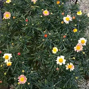 お疲れ様です😃 ボンザマーガレット ピンクレモネード❤️💛 今日の陽気で 一気に花数が増えました😊