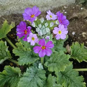お疲れ様です😃 今は亡き近所のオバチャンから頂いた サクラソウです🌸 咲き始めは薄いピンクで だんだん濃くなっていきます。 2色楽しめるなんて 得した気分です😊