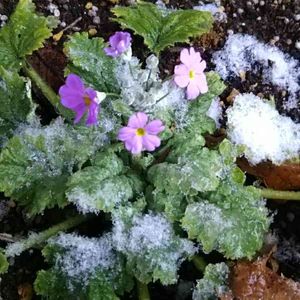 お疲れ様です😃 埼玉は大粒の雪が降り始めました😨💦 先日、投稿させて頂いた 咲いたばかりのサクラソウ。 寒そうです💦