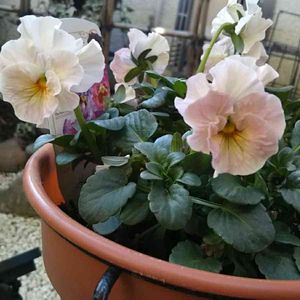 おはようございます😃 見切り品の パンジー シエルブリエ。 植えてから 1ヶ月近く咲きませんでしたが 1つ咲いたのを皮切りに 次から次へと咲いてきました😅 みんな誰かが咲くのを待ってたのかなぁ🤔 今日も厳しい寒さになりそうです。 皆様、お気をつけ下さい。