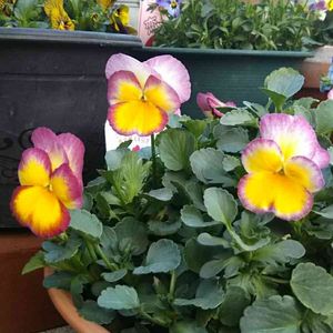 おはようございます😃 フリル咲きパンジーと リナリアです💛
