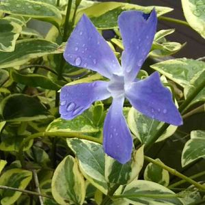 おはようございます😃 病院の中庭でひっそりと咲いてた 斑入りツルニチニチソウです。