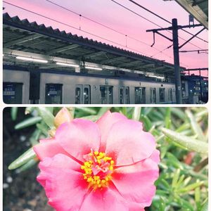 おはようございます(*^^*) 今朝の今の4時10分の朝焼けです 電車🚃を待つホームからの朝焼けが綺麗 昨日の松葉ボタンの花と同じ色ですよ。゚+.(*´∀`*).+゚。
