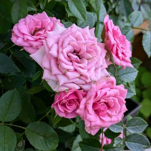 ローズジネルジック シナクティフの名も… 青みがかったピンクがお気に入りの薔薇🩷🌹🍃 香をお届け出来ないのが、残念。小雨混じりの朝は、しっとり…エントランスの顔🩷🌹🍃