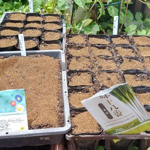 23日に、ガーデンネックレスの企画でいただいた種を次女とまきました。 一昨日、ほそ〜〜いネギが無事発芽👏 ニンジンの春まきには遅いようでしたが200粒も入っていたので少し挑戦。セリ科を食草とするキアゲハのためにも、なんとか育って欲しいところです🥕🐛 お花はジニアが順調です🌱🌱🌱✨ 我が家ではコスモスは盆過ぎにまとめて播種し、ヒマワリはすでに3種育てているので見送りました🙏 ペパーミントの栽培キットは土をお湯でふやかしたり、楽しそうでした。 すごく強そうなのに、まだ発芽しません🙄