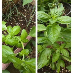 GS様より頂きました、ネギ味十八番とスイートバジルたち。 バジルは2本だけ生き残って、今は凄く元気です。曲がりと虫食いが出てきたので、収穫しました😁🎶🎶