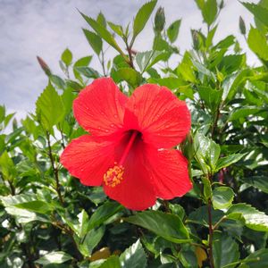 斑入り葉のハイビスカス マリーナサンライズ✨🌺✨ 白い斑入り葉に、真っ赤なお花が映えます😍 お花が無い時期でも、葉っぱの鑑賞価値大です😄💕