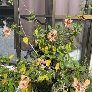 少し水と肥料切らして葉っぱ🌿枯れよる⤵︎ 今年初めて7個咲いたけど色悪いし小さい‼️