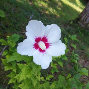 昨年の7月に購入し、今年地植えした宗旦ムクゲの花が咲きました!!昨年秋冬に葉っぱがなくなり心配しましたが、無事にに育ってくれているようで安心しました! ちょっと葉っぱの色が悪いのが気になりますが、大きく育ってくれるのを祈ります!