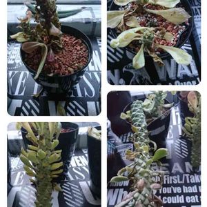 モナデニウムについつい手が伸びて…… 白い花が咲いてるドラゴンテール🐉 (グエンテリー) ピンクの花と葉が可愛いデカルデアエ💕(サンセットホワイトバーチ)(ルガルディアエ錦) 名前ややこしい😅