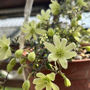 常緑クレマチスペトリエイ💚グリーンのお花が可愛らしく咲きました👏