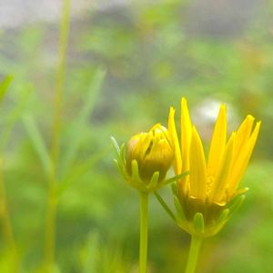 今年の小さな鉢に2本だけ 和棉の一番花は 完全に開く前に萎みそう💛