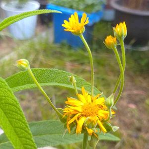 種まき2年生 ルドベキア 葉っぱの手触りも うぶ毛モフ💕 珍しくオトナ色を選んだな🏵️