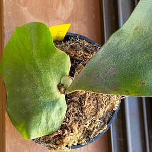 ビカクシダ E×A(エレファントティス×アルシコルネ)として入手したものです。夏は全く動きがなく…ダメになったのかと思っていたら秋の終わり頃から動き出した。貯水葉2枚目が出てきました。夏が休眠期なん?