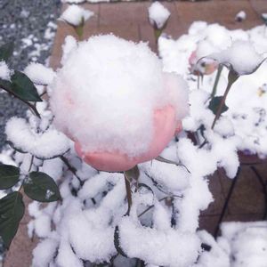 今日の朝です。 一晩でかなり積もりました! 茎が強い子は無事でした〜(;´д`)💦