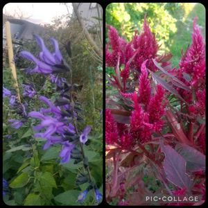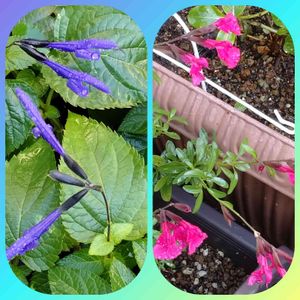 こんにちわ🤗 🌿我が家の庭 🍃爽やかな色の🪴お花が 咲いています。 アサガオ コリウス メドセージ ルリマツリ 梅雨明け まだです😞
