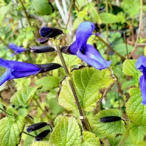 おはようございます😊 本日の降水確率は0%!しっかり水やりしておかないと! 毎年咲いてくれるメドセージさん☺️濃い紫の花と黒い茎が、我が家の庭をグッと引き締めてくれています🌿