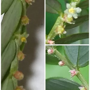 コミカンソウのお花 ちっこいちっこい かわいいお花ですね😆💕 マクロレンズで 🔍🔍🔍🌱🌱 枝先に咲いている白い花が雄花 枝の下に咲いているのが雌花