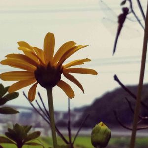 今朝の庭から ユリオプスデージー 咲き始めました🎶 その先に トンボが🤩 初秋のツウショット ☁️🌾🍁🍃🌼