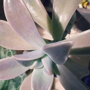 我が家の唯一生き残りの多肉さん 「朧月」(おぼろづき) いつの間にか 大きく育ってました グネ~~ンと 鉢からはみ出ています🤣🤣