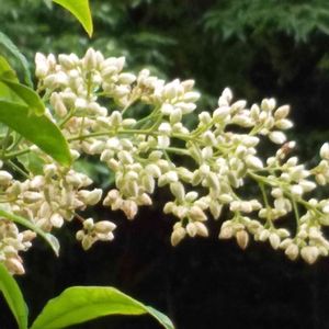ナンテン 雨上がりの朝 雫が零れ落ちそう 蕾が沢山ついてます もうすぐ 密に花が咲くでしょう