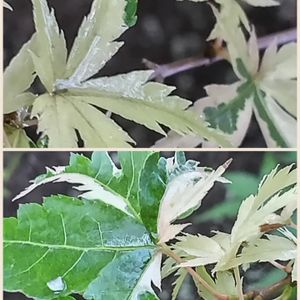 朝の庭パトより 私の好きなモミジ🍁 白と緑のコントラスト🤍💚 雨水をまとって 綺麗です💚🤍🍁