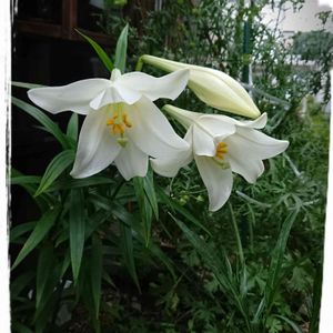 朝開きかけていた百合が咲きました❕😆💗 今年は3つ咲くようです😌 ムスクマロウがほぼ終わったなーと思っていたら、待ちかねたように美女登場👸‼️ ロビチビちゃんからの球根です~~❗ 今年も咲きましたよ‼️ 有り難う~~❗m(__)m💗