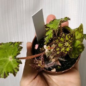 根茎性ベゴニアのレオポンという子をお迎えしました。 こんな小さいのにお花つけてるとこに惹かれて。 このサイズのベゴニアは何度も枯らしてるんだけど😅 サンキュッパだったのでチャレンジ!