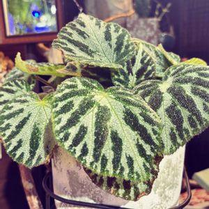 レックスベゴニア・ビスタ✨ 園芸店でレックスベゴニアのミニ苗が200円で思わずお買い上げ いろんな種類がある中、葉模様が鮮やかなビスタという品種にしてみました。 初めての根茎性ベゴニア 育て方を調べて勉強したいと思います。 pic2⭐️空中湿度を好むらしいので、とりあえず他の植物たちでギュウギュウに囲んで置いてみました。 葉の模様然り真っ赤な茎がきれいです。