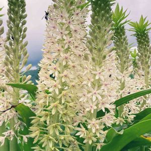 下の方から小さな白い花が咲きました パイナップルリリー💠