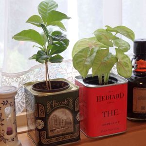 100円ショップのコーヒーの木と シンゴニウム💚 キッチンの窓辺で元気です♡