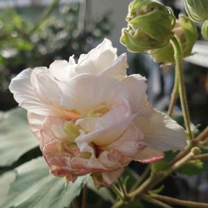 薬玉咲き酔芙蓉は朝から少し酔いがまわってるようです🍸