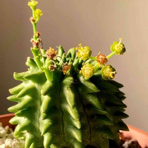 スザンナエ さん✨ Euphorbia susannae (和名:瑠璃晃) 多肉棚の隅で、人知れずこっそりと 咲かせてくれていたみたいです🌼 気が付かずにゴメンね💦 雌雄異株なので、やっとどちらなのかが 分かりました😁 君は、男の子だったんだね~😆🍀✨