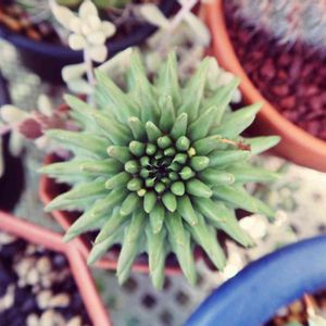 鉄甲丸と同じでスザンナエも雌雄異体のようで、この子は雌株かな? これ、まだ咲いていないか?