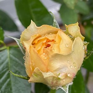 🌿マイガーデン🌿より バラ 🌹 キャラメルアンティークさん♪ 雨☔️に打たれながらも アプリコット色の かわいいバラが 咲きました😊 見てるだけで ココロが ほっこりします❣️