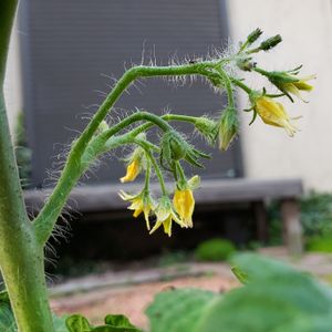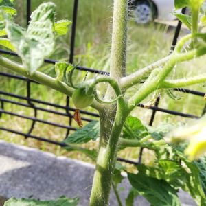 ミニトマト「あまたん」の実が見えました~😆 朝は気付かなかったのに、すくすく育っていました🎵 明日からテレワーク週💻 フラフラと庭に出ないように気を付けねば😅