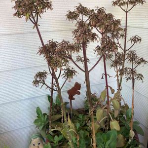 〈カランコエ 子宝弁慶草〉 ズボラな 私にはピッタリ! 勝手に育ってくれます❣️ 葉っぱに小株が付いて 可愛いけど ドンドン増えます...😅 枯れ花を切る前に 1枚!