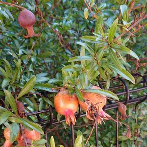 『ザクロ』 さすがに交通量の多いところなので、ザクロの成長を見守るくらいですが、毎年結構な数のザクロの実がなります。 ザクロの実とちょっと遅咲き?のザクロの花☺️