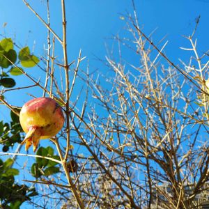 住宅街に植わっていたざくろ(石榴)2 ざくろの実だけがちらほら💛 綺麗なルビー色の果実酒になるのになぁーー 連投すみません🙇 写真2020/12/17