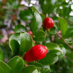 グリーンの葉っぱの中に風に揺れていた ザクロ 柘榴 ざくろ タマゴ🥚ぐらいの大きさでした