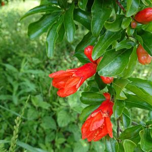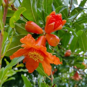 『ザクロの花❤️』 会社のザクロの花 ようやく写真に 撮れました🤳 春先に枝を🌿切ってしまい 花は見れないと、落ち込んでましたが 綺麗なザクロの花❤️を 見れて嬉しかったでした‼️ 八重咲きザクロも素敵ですが 普通のザクロも素敵ですね❤️