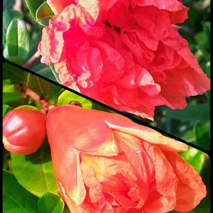 ザクロ 八重のお花が咲きました よく見たら見覚えがあります 去年ボケのお花と思って投稿したあのお花かも ザクロが去年も咲いていたんですね GSのおかげで気付きました