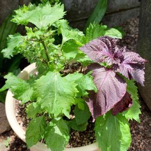 赤シソと青シソ🌱 今年は鉢植えにしたからか、いつもより全然小さい。。。 青シソにもう花がついてしまったので、まだまだ収穫を楽しむ為、このあと花は切り落としました🙄
