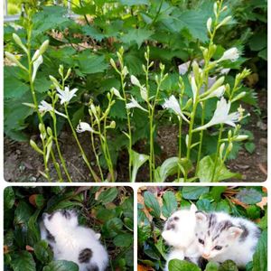白く見えるけど、ライムグリーンのギボウシです。😆 今朝、家の庭に親猫1匹と子猫2匹がいました。😃 野良猫でしょうか!? 親猫は、私の気配を察すると、さっと逃げ出しました。😆 残った2匹の子猫たちは、まだ歩けないのか、2匹でかたまってむくむく動いています。💕 か、かわいい‼️😍🎶 だけど、親子3匹飼うわけにはいかないし、今日は外出の用事があって忙しかったので、そのままにしておきました。😅 そして、夕方帰ってきたら、猫ちゃんたちは何処かへ行ってしまっていました。😵 残念なような、ほっとしたような…。😌 今日は22日、ニャンニャンの日なので、写真を撮らせてくれたのかな?😄🎶 みちのすけさんの 🏷️ニャンニャン祭り に参加します。😃🎶 頑張ろう❗日本‼️ 👊✨