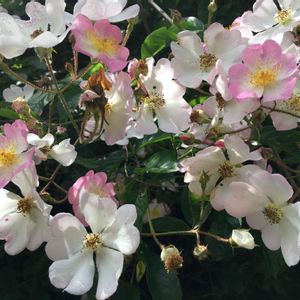 リバプールエコーと八女津姫(レンゲローズ)が咲きました。 同時に咲くと綺麗ですね!