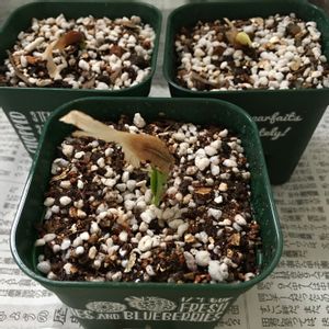 プルメリア 10つの内6つ発芽 4つは腐ってしまいました涙 ずっと天気が悪かったのと 私の水やりが下手だったのかと😥 全てスリット鉢に植え替え完了 最初に芽が出た子は 日照不足と殻がうまく外れなかったせいか 双葉の片方が黒く変色 来週は天気が回復しそうなので 元気になってほしい