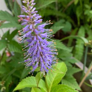 キレイなムラサキ💜 クガイソウはオオバコ科クガイソウ属の多年草。 茎先に穂状の長い総状花序(柄のある花が花茎に均等につく)を出し、青紫色の小さな花をたくさんつける。 花冠は筒状をしていて、先が浅く4つに裂ける。 萼片は5枚で先が尖る。 雄しべは2本、雌しべは1本。 葉は披針形で、4~8枚が輪生して何段もの層になる。 葉は先が尖り、縁には細かいぎざぎざ(鋸歯)がある。