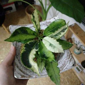 絵の具こぼしたみたいな葉っぱ 緑色で統一企んでたけど 全然いいかも〜🐒💓 クロトンとしかラベル貼ってなくて タマラかな〜、なんだろな〜🐒?!