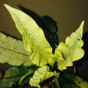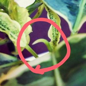 ここ数日で、斑が無い白〜い葉が出てきました。クロトンらしくない(?)繊細なパステルカラーです。 直射日光は避けてますが、関係あるかどうか。