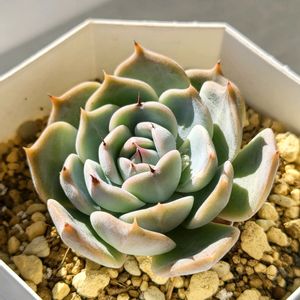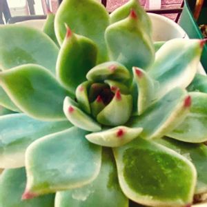 朝から小雨でした☔️ お迎えした時外葉が数枚斑入り✨夏を経て外葉が枯れ落ちここまでかと💦まじまじ見たら中心の方に斑入りの葉が⁈👀これは錦の子だと信じて。変化を楽しみに育てま〜す( ˙³˙)( ˙³˙)( ˙³˙)( ˙³˙)👍💕